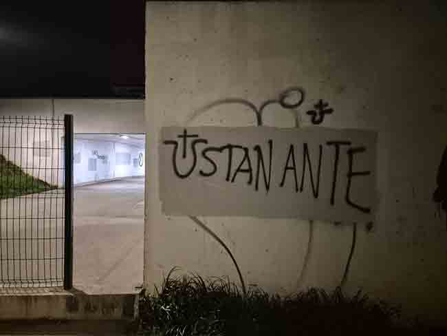 Na zidovima su vidljivi natpisi „Ubij Pupovca” i „Ustani Ante”… A sve je devedesetih počelo nevino, sa „Ustani Bane“… Posle grafita iz januara zidovi podzemnog prolaza su sanirani i na njima, u međuvremenu prekrečenim, ponovo su su se pojavili grafiti istovetne sadržine.